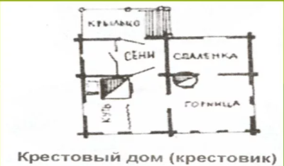 Изба с двумя перекрещенными стенами внутри.